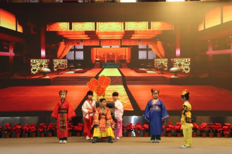 除了日常晨读,学校还定期举办主题阅读活动,其中 “春季书香节” 和 “秋季阅读月” 是最受学生欢迎的两大品牌活动。每年 4 月,学校以 “世界读书日” 为契机开展 “春季书香节”;每年 10 月,结合秋季学期的教学重点开展 “秋季阅读月”。每一届活动都会围绕不同的主题展开,让学生在主题引领下深入阅读、主动探索。2025 年春季,学校 “书香润童心,阅读伴成长” 为主题,学校精心策划了学校读书节活动。 讲故事比赛、经典名著话剧表演、读书手抄报展览、亲子阅读分享会、经典诵读展演等一系列活动,让学生在多样化的体验中感受经典的魅力。活动中,学校鼓励各班级选择自己喜欢的形式进行改编和表演,学生们自主分配角色、设计台词、制作道具、编排动作,在合作中感受文学的魅力。四年级学生合作表演《晏子使楚》,学生们分别扮演晏子、楚王、士兵等角色,通过精彩的对话和动作,将晏子的机智勇敢、楚王的傲慢与尴尬展现得淋漓尽致;二年级(1)班的学生则改编了《民俗故事 —— 年兽》,他们穿上喜庆的红色服装,用生动的表演讲述 “年兽” 的传说,让台下的小观众们看得津津有味。“在排练话剧的过程中,我们不仅重新读了《晏子使楚》这本书,还一起讨论人物的性格和故事的意义,现在我对这本书的理解比以前深刻多了。” 扮演晏子的张婉婷同学说。