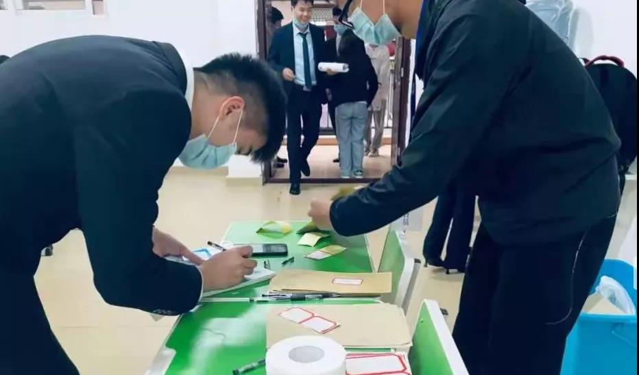 一般待下一名考生回答完以后,记分员收集各考官对前一名考生的评分表,核算分数。