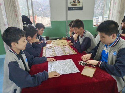 棋类社团的对弈紧张有序,有效地锻炼了学生的逻辑思维。