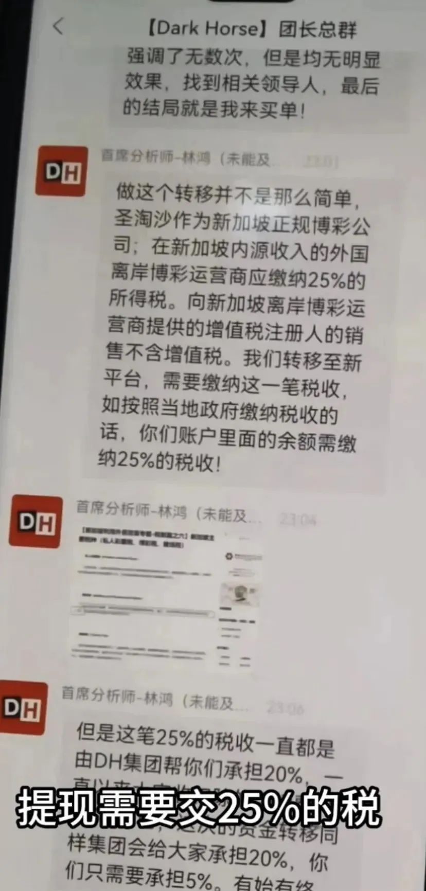 这个博彩类的跟单资金盘近日也崩盘了,还谎称说要向新加坡政府缴纳税收,按用户余额的25%缴纳,这都是这类资金盘骗局的基本操作了,比如国庆期间崩盘的微云科技谎称是要交律师费,按账户余额的20%交。据说这个圣淘沙参与者有十几万人,圈了应该几十亿。